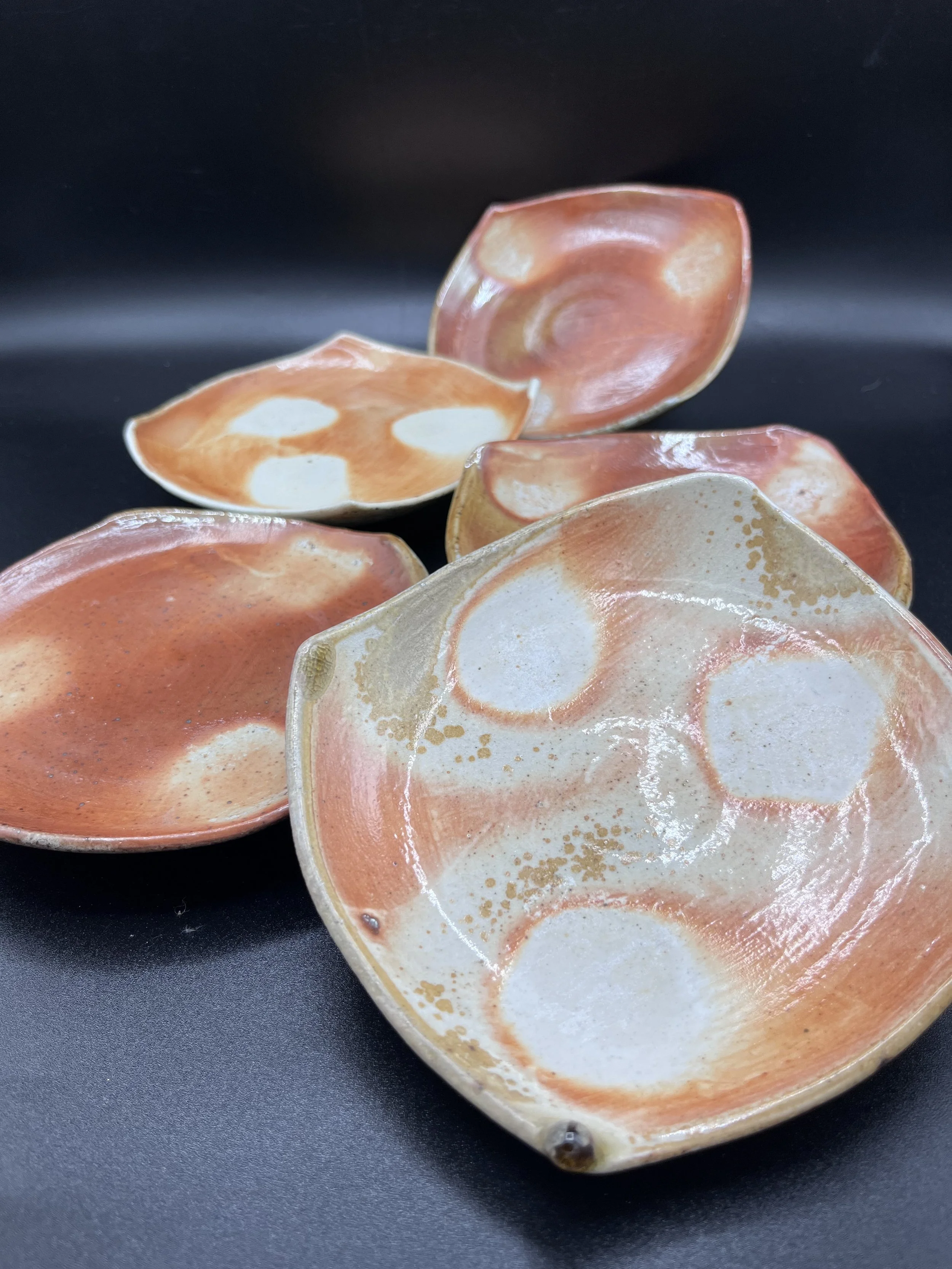 Wheel Thrown and Altered Plates. Wood Fire. Cone 13 Reduction. 2025